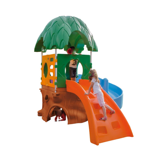 Toda criança imaginou ter uma casa na árvore e agora isso é possível. A brincadeira está feita com escalada, escorregador em cura, tobogã espiral e observador. De fácil montagem e desmontagem este produto busca instigar o contato das crianças com a natureza através da imaginação. A base do produto em formato de tronco oco possibilita à criança entrar pelo piso da casa através de um alçapão.