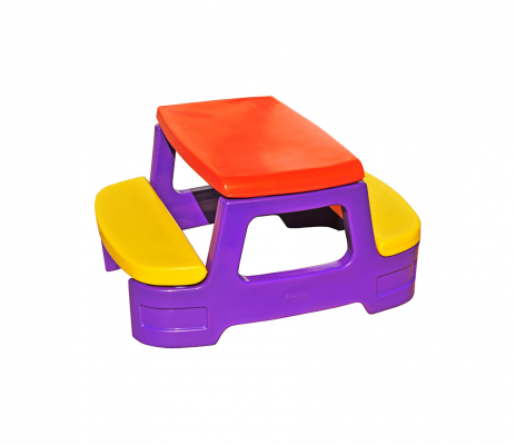 Mesa infantil com assento embutido confeccionada em resina plástica de polietileno rotomoldado. Em cores diversificadas, fácil montagem e fácil transporte. Suporta até 120 kg.
